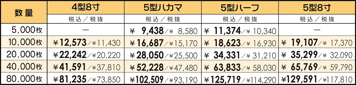 オフセット印刷でのフルカラーの価格です。