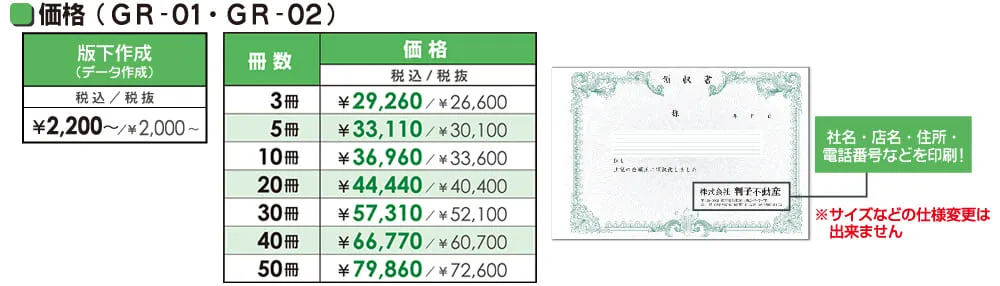 ※1枚目に「控」の文字は入りません。必要な場合は別途3,300円(税込)がかかります。