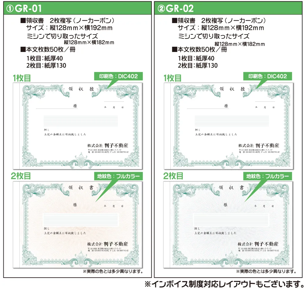1枚目:領収書(白色) 2枚目:領収書(地紋付き)