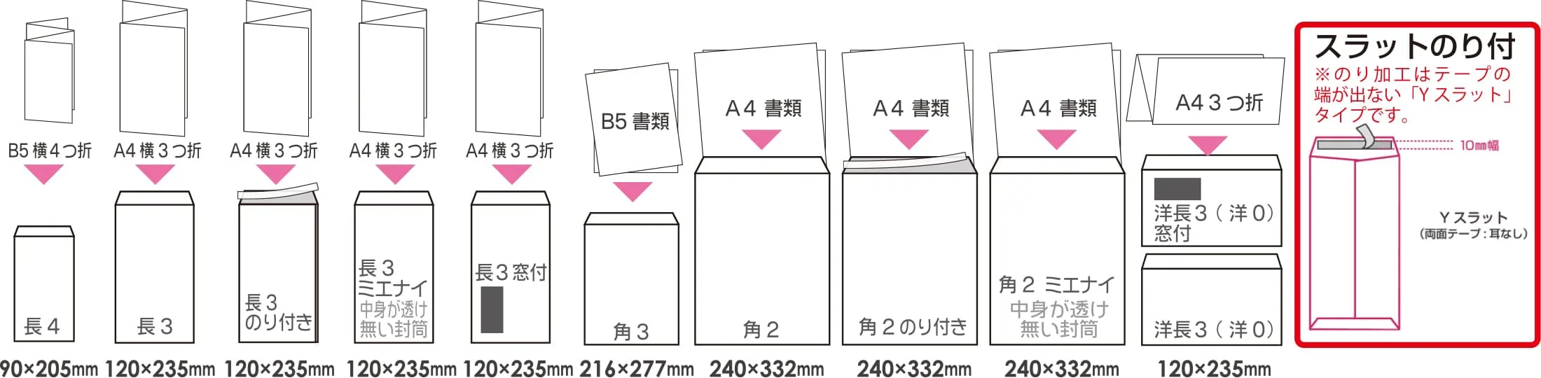 お客様がどのような書類を扱うかにより、最適な封筒サイズも異なります。