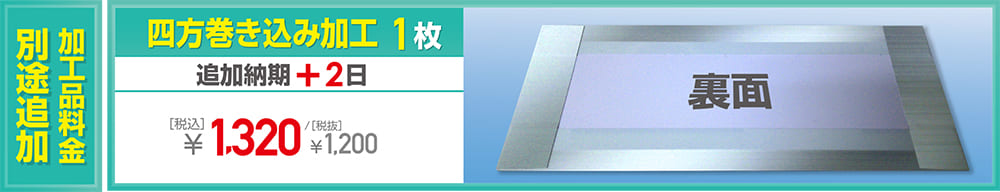- ヘアライン調シートは、通常四方巻き込み仕上げなしになります。